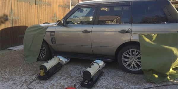 otogret avtomobil teplovymi pushkami v