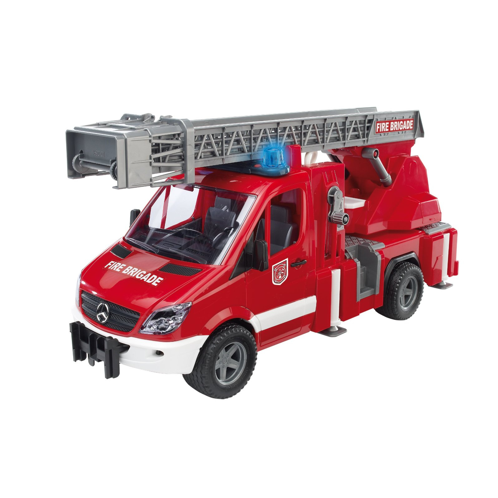 bruder mb sprinter pozharnaya mashina s lestnicej i pompoj s modulem so svetovymi i zvukovymi effektami