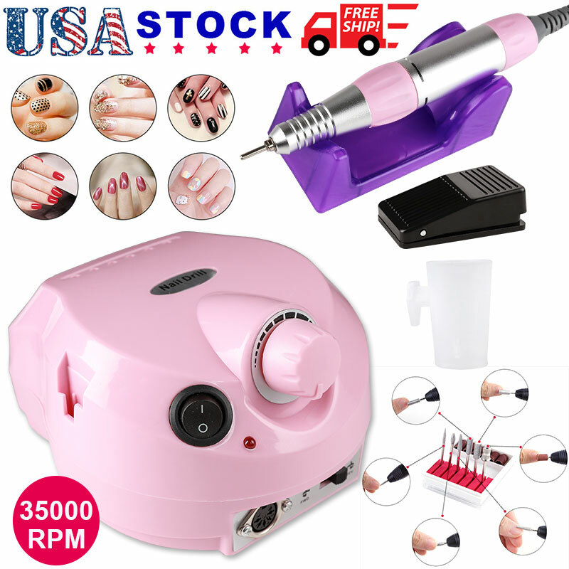 professional finger toe nail care electric nail drill machine manicure pedicure kit electric nail art file drill with 1 pack of sanding bands pink