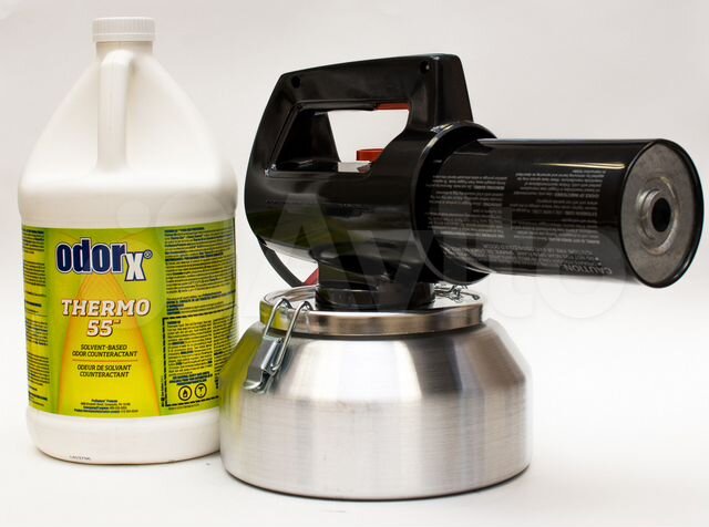 без тщательной чистки поверхностей только временная ароматизация до 1 месяца. где использование сухого тумана odor x это только последний 3 шаг для удаления запахов. оборудование и жидкости для сухого тумана с рекламными материалами.