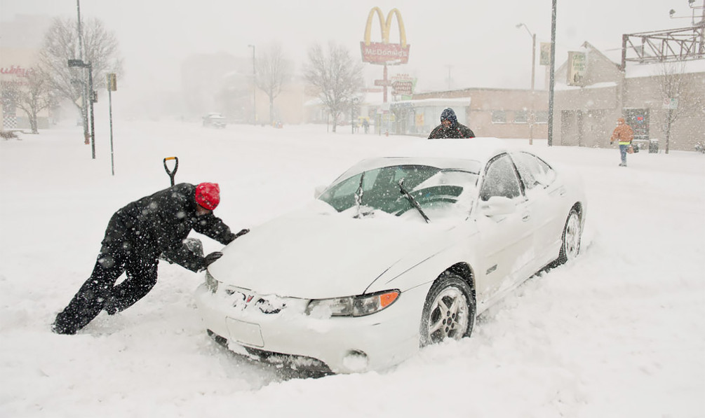 машина застряла в снегу