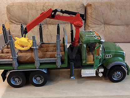 lesovoz bruder mack s portativnym kranom i brevnam