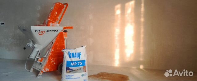 машинная штукатурка киев цена. машинная штукатурка цена которой вполне доступна выполняется с помощью специальных станций которые под давлением наносят готовую смесь на стену. используем гипсовую смесь knauf mp 75.