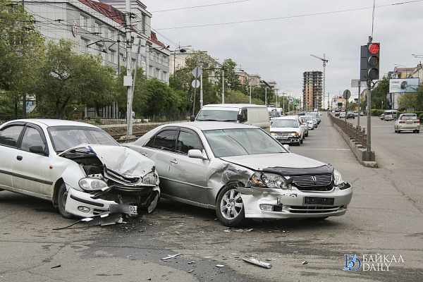 в улан удэ пьяный водитель протаранил две машины видео автомобили мирно ожидали зеленый сигнал светофора.