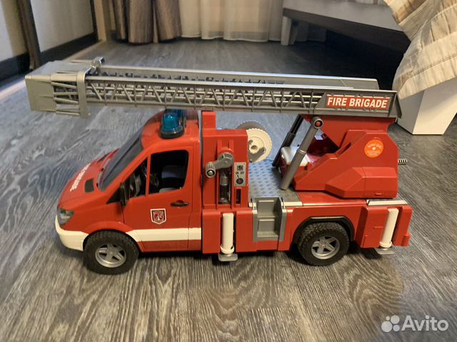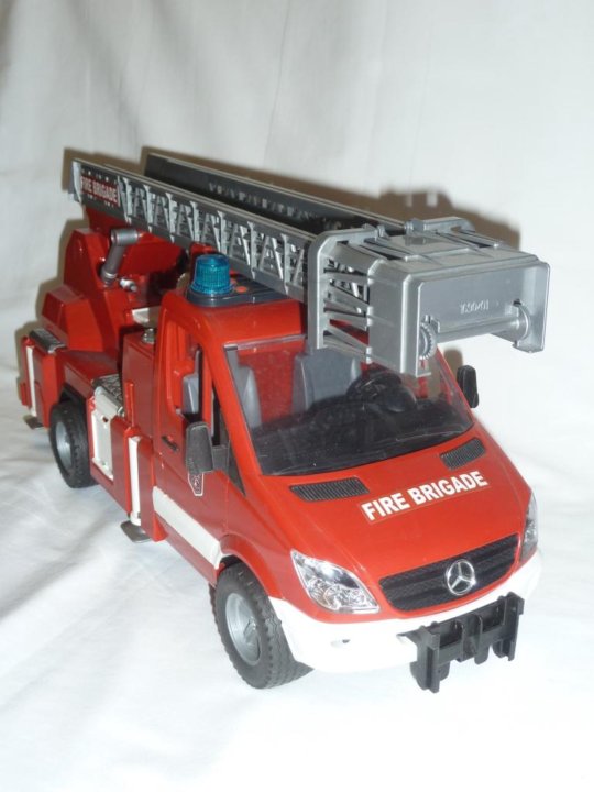 igrushka bruder mercedes sprinter pozharnaya mashina s lestnicej i pompoj svet i zvuk 1 16 02532
