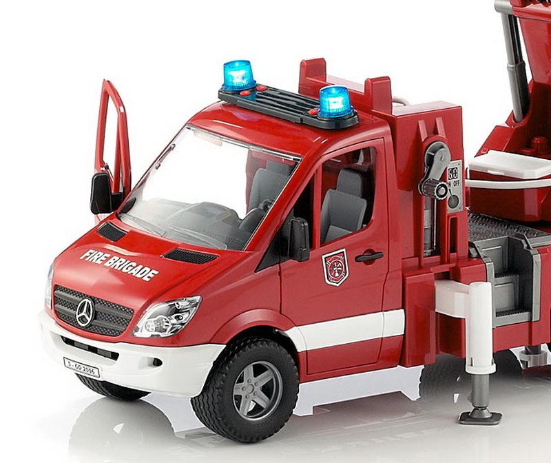 bruder mb sprinter pozharnaya mashina s lestnicej i pompoj s modulem so svetovymi i zvukovymi effektami