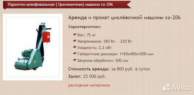 arenda parketno shlifovalnoj ciklevochnoj mashiny misom so 206 1m