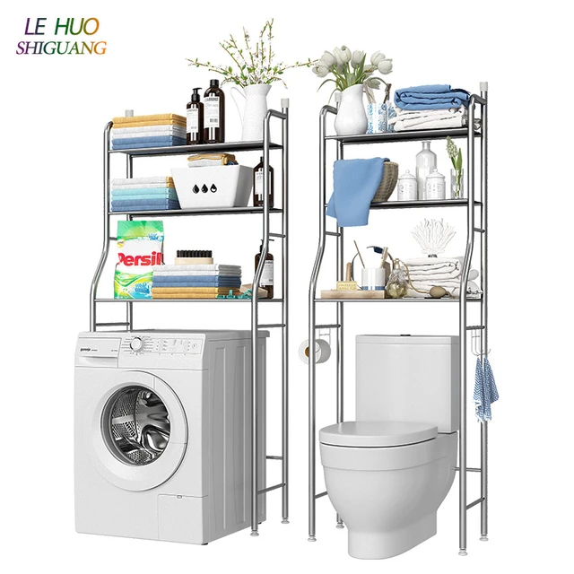 stellazh polka napolnaya tryohyarusnaya washing machine storage rack dlya vannoj komnaty nad stiralnoj mashinoj nad bochkom unitaza